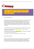 Samwelig On this page, you find all documents, package deals, and flashcards offered by seller SAMWELIG. 185 Documents 0 Flashcards 2 Package deal Community 0 Followers 0 Following 189 items Everything Documents Flashcards Package deal Best sold Newest Rating NR 601 Midterm Exam (2025/2026) – Latest Verified Questions and Answers for Advanced Primary Care (0) $13.99 0x sold This updated NR 601 Midterm Exam 2025/2026 study guide contains verified and correct answers for advanced primary care and adult-gerontology nurse practitioner students. Topics include cardiovascular and respiratory disorders, hypertension management, osteoarthritis, osteoporosis, polymyalgia rheumatica, gout, dementia, delirium, pharmacology, and preventive health. Designed according to current clinical guidelines, this complete review supports Chamberlain NP students preparing for the NR 601 m... i x Exam (elaborations) • 17 pages • by SAMWELIG • uploaded 2025 Quick View i x CNA - Certified Nursing Assistant • CNA - Certified Nursing Assistant NR 601 Final Exam (2025/2026) – Complete Geriatric Primary Care Questions and Verified Answers (0) $13.49 0x sold This NR 601 Final Exam 2025/2026 study guide contains the latest verified questions and correct answers covering all major topics in adult and geriatric primary care. It includes detailed case-based questions on hypertension, diabetes, dementia, Parkinson’s disease, delirium, prostate disorders, frailty, palliative care, end-of-life ethics, Medicare and Medicaid, and elder mistreatment. Perfect for Nurse Practitioner students preparing for NR 601 or AGPCNP exams, with real clinical scenarios a... i x Exam (elaborations) • 16 pages • by SAMWELIG • uploaded 2025 Quick View i x CNA - Certified Nursing Assistant • CNA - Certified Nursing Assistant NR 601 Final Exam (2025/2026) – Verified A+ Questions and Answers for Advanced Primary Care (0) $13.99 0x sold This updated NR 601 Final Exam 2025/2026 review includes verified A+ questions and accurate answers covering all major topics in adult and geriatric primary care. Topics include diabetes management, hypertension (2025 ACC/AHA guidelines), mental health disorders, Parkinson’s disease, dementia, delirium, palliative and hospice care, cardiovascular and pulmonary conditions, urinary tract disorders, and pharmacology. Designed for Nurse Practitioner students at Chamberlain and similar programs to ... i x Exam (elaborations) • 29 pages • by SAMWELIG • uploaded 2025 Quick View i x CNA - Certified Nursing Assistant • CNA - Certified Nursing Assistant NR 509 & NR 601 Final Exam Study Pack (2025/2026) – Verified Questions and Correct Answers for Nurse Practitioner Students (0) $12.99 0x sold This complete 2025/2026 NR 509 and NR 601 exam bundle provides verified questions, correct answers, and rationales for advanced practice nursing preparation. It covers NR 509 topics such as physical assessment, breast and abdominal exams, male and female genitalia, and musculoskeletal systems. The NR 601 final exam section includes advanced primary care management, pharmacology, geriatric syndromes, diabetes, cardiovascular disease, mental health, and palliative care. Ideal for Chamberlain and N... i x Exam (elaborations) • 46 pages • by SAMWELIG • uploaded 2025 Quick View i x CNA - Certified Nursing Assistant • CNA - Certified Nursing Assistant NR 509 Week 2 Questions and Verified Answers (2025/2026) – Advanced Physical Assessment Exam Review (0) $14.49 0x sold This 2025/2026 NR 509 Week 2 study guide contains verified Chamberlain University exam questions and correct answers for Advanced Physical Assessment. It covers essential nursing assessment skills including inspection, palpation, percussion, auscultation, vital signs, cranial nerve testing, eye and thyroid assessment, and pediatric/geriatric exam techniques. Ideal for NP students preparing for weekly quizzes, midterms, and practical assessments. i x Exam (elaborations) • 77 pages • by SAMWELIG • uploaded 2025 Quick View i x CNA - Certified Nursing Assistant • CNA - Certified Nursing Assistant NR 509 Midterm Exam (2025/2026) – Advanced Physical Assessment Questions and Verified Answers (Graded A+) (0) $13.49 0x sold This 2025/2026 NR 509 Midterm Exam review provides the latest and most accurate advanced physical assessment questions with verified answers, graded A+. It covers all key systems including cardiovascular, respiratory, neurological, and dermatological assessment, along with clinical reasoning, communication techniques, and diagnostic interpretation. Ideal for Chamberlain and NP students aiming for top results in NR 509 and advanced practice nursing exams. i x Exam (elaborations) • 37 pages • by SAMWELIG • uploaded 2025 Quick View i x CNA - Certified Nursing Assistant • CNA - Certified Nursing Assistant NR 508 & NR 509 Exam Study Bundle (2025/2026) – Verified Questions and Answers for Advanced Practice Nursing Success (0) $13.49 0x sold Comprehensive NR 508 and NR 509 study materials for 2025/2026, including final review, midterm, and weekly quizzes with verified answers. Covers advanced pharmacology and physical assessment topics such as drug prescribing, cardiovascular management, ACE inhibitors, and clinical reasoning. Perfect for Chamberlain and other NP students preparing for exams with 100% accuracy and graded A+ results. i x Exam (elaborations) • 101 pages • by SAMWELIG • uploaded 2025 Quick View i x CNA - Certified Nursing Assistant • CNA - Certified Nursing Assistant NEIEP 200 Final Review (2025/2026) – Elevator Industry Mechanics Complete Study Guide (0) $14.49 0x sold This NEIEP 200 Final Review 2025/2026 contains verified exam questions and answers covering key topics in the elevator industry. Topics include traction systems, counterweights, governors, rail installation, safety codes, wire rope handling, and elevator operation principles. Perfect for IUEC apprentices and students prepa