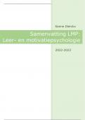 Een zeer volledige samenvatting van alle leertheorieën en motivatietheorieën uit de lessen LMP. De samenvatting omvat de inhoud van de artikels, de kennisclips en extra info uit de contactmomenten (dus een allesomvattende samenvatting).