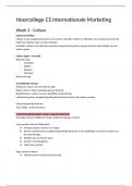 Onderwerpen: - Cultuur (verschillen) - Model van Hofstede - Context benadering - Strategisch plan ! Met mogelijke tentamen onderwerpen highlighted !