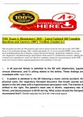 This document features the complete 160-question TMC Practice Exam B for respiratory therapy, updated for 2025 and graded A+ with 100% verified correct answers. It covers all major NBRC exam topics, including patient assessment, oxygen therapy, mechanical ventilation, airway management, diagnostics, and respiratory pharmacology. Each question is matched with the correct answer for efficient review and targeted preparation. Designed to mirror the structure and difficulty of the official TMC exam,...