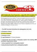 This document features the complete 175-question test bank for the most recent 2024–2025 ARRT Radiography Exam, with every answer 100% verified and graded A+. It covers all key exam areas, including patient care, image production, radiographic procedures, and radiation protection. Each question is matched with the correct answer, providing a focused and reliable study resource. Designed to mirror the format and difficulty of the official ARRT certification exam, it ensures comprehensive review...