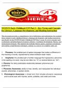 This document provides a comprehensive list of definitions and explanations for essential terms related to early childhood literacy, language development, and reading instruction, specifically for the NYSTCE Early Childhood CST Part 1 exam. It covers concepts such as phonemic and phonological awareness, phonics, vocabulary development, fluency, and instructional strategies. The material also includes literary genres, grammar conventions, and reading comprehension techniques, making it a concise ...