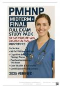 This comprehensive study pack covers all essential content for the PMHNP Midterm and Final exams in NR 547 at Chamberlain University (2025 edition). It includes verified test materials such as the full midterm and final exams, cognitive behavioral therapy (CBT) notes, and an extensive psychopharmacology test bank. Also featured are detailed case studies with rationales and certification prep questions, making this a complete resource for advanced psychiatric and mental health nurse practitioner ...