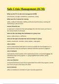 This document offers a complete set of questions and answers designed for Safe Crisis Management (SCM) training in 2024. It covers critical concepts such as trauma-informed care, group dynamics, behavior types, de-escalation strategies, and emergency safety interventions. Ideal for staff preparing for certification or refreshing their knowledge, this guide combines theoretical principles with practical applications across multiple crisis scenarios.