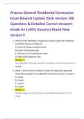 - Arizona General Residential Contractor Exam Newest Update 2026 Version 100 Questions & Detailed Correct Answers Grade A+ (100% Success) Brand New Version!! • Tentamen (uitwerkingen)