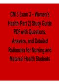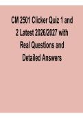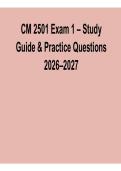 Shadystuvia On this page, you find all documents, package deals, and flashcards offered by seller shadystuvia. 1199 Documents 0 Flashcards 16 Package deal Community 1 Followers 1 Following 11 Reviews received 5 6 0 0 0 2 months ago • lizunitedstates 7 Brew BrewistaBUNDLE 2 months ago • alisonoscanlan TEST BANK PATHOPHYSIOLOGY THE BIOLOGIC BASIS FOR DISEASE IN ADULTS AND CHILDREN 8th Edition 7 months ago • cindy13 NCLEX RN ACTUAL EXAM TEST BANK, REAL QUESTIONS & ANSWERS NCLEX 9 months ago • ExamSolutionsGuru 7 Brew Barista Test Study GuideQuestions And Answers 2024. 9 months ago • ExamSolutionsGuru BSNC 1000 midterm Questions and answers + Show more reviews 1234 items Everything Documents Flashcards Package deal Best sold Newest Rating CM 3 Exam 3 Womens Health Part 2 Study Guide PDF Questions Answers Detailed Explanations 2025/ 2026 (0) $21.99 0x sold Download the CM 3 Exam 3 – Women’s Health (Part 2) Study Guide PDF featuring comprehensive questions, answers, and detailed explanations with solution designed to support nursing students in mastering women’s health concepts. This guide strengthens clinical understanding, improves critical thinking, and enhances exam readiness for success in 2025/ 2026. i x Exam (elaborations) • 27 pages • by shadystuvia • uploaded 2026 Quick View i x Women’s Health • Women’s Health CM 330 Exam 1 Part 2 2026 Construction Management Study Guide with Practice Questions Comprehensive Answers and Detailed Explanations 2026/ 2027 (0) $21.99 0x sold Download the CM 330 Exam 1 Part 2 2026 Construction Management Study Guide with Practice Questions featuring comprehensive questions, answers, and detailed explanations with solution designed to support students in mastering construction management concepts. This guide strengthens understanding of key topics, improves critical thinking, and enhances exam readiness for success in 2026/ 2027. i x Exam (elaborations) • 3 pages • by shadystuvia • uploaded 2026 Quick View i x Construction Management • Construction Management CM 2101 Exam 2 Quiz Questions and Answers Study Guide Comprehensive Detailed Explanations 2025/ 2026 (0) $21.99 0x sold Download the CM 2101 Exam 2 Quiz Questions and Answers Study Guide featuring comprehensive questions, answers, and detailed explanations with solution designed to support students in mastering construction management concepts. This guide improves understanding, strengthens problem-solving skills, and enhances exam readiness for success in 2025/ 2026. i x Exam (elaborations) • 6 pages • by shadystuvia • uploaded 2026 Quick View i x CM 2101 • CM 2101 CM 2500 Final Exam Part 2 Study Guide and Practice Questions Comprehensive Answers Detailed Explanations 2025/ 2026 (0) $21.99 0x sold Download the CM 2500 Final Exam Part 2 Study Guide and Practice Questions featuring comprehensive questions, answers, and detailed explanations with solution designed to support students in mastering construction management concepts. This guide strengthens understanding of key topics, improves problem-solving skills, and enhances exam readiness for success in 2025/ 2026. i x Exam (elaborations) • 4 pages • by shadystuvia • uploaded 2026 Quick View i x CM 2500 • CM 2500 CM 2501 Hebert Final Exam Study Guide and Practice Questions Comprehensive Answers Detailed Explanations 2025/ 2026 (0) $21.99 0x sold Download the CM 2501 Hebert Final Exam Study Guide & Practice Questions featuring comprehensive questions, answers, and detailed explanations with solution designed to support students in mastering construction management concepts. This guide strengthens understanding of key topics, improves critical thinking, and enhances exam readiness for success in 2025/ 2026. i x Exam (elaborations) • 6 pages • by shadystuvia • uploaded 2026 Quick View i x CM 2501 Hebert • CM 2501 Hebert CM 2501 Hebert Test 1 Questions and Answers Comprehensive Study Guide with Detailed Explanations 2025/ 2026 (0) $21.99 0x sold Download the CM 2501 Hebert Test 1 Questions & Answers featuring comprehensive questions, answers, and detailed explanations with solution designed to support students in mastering construction management concepts. This guide enhances understanding, improves problem-solving skills, and boosts exam performance for success in 2025/ 2026. i x Exam (elaborations) • 4 pages • by shadystuvia • uploaded 2026 Quick View i x CM 2501 Hebert • CM 2501 Hebert CM 2501 Hebert Test 2 Study Guide and Practice Questions 2026–2027 Comprehensive Answers and Detailed Explanations 2026/ 2027 (0) $21.99 0x sold Download the CM 2501 Hebert Test 2 Study Guide & Practice Questions 2026–2027 featuring comprehensive questions, answers, and detailed explanations with solution designed to support students in mastering construction management concepts. This guide strengthens understanding of key topics, improves problem-solving skills, and enhances exam readiness for success in 2026/ 2027. i x Exam (elaborations) • 3 pages • by shadystuvia • uploaded 2026 Quick View i x CM 2501 Hebert • CM 2501 Hebert CM 2501 Exam 1 Comprehensive Construction Management Study Guide and Assessment Review 2025/ 2026 (0) $21.99 0x sold Download the CM 2501 Exam 1 Comprehensive Construction Management Study Guide and Assessment Review featuring comprehensive questions, answers, and detailed explanations with solution designed to support students in mastering construction management concepts. This guide strengthens understanding of project planning, cost control, and scheduling, improving exam readiness and academic performance for success in 2025/ 2026. i x Exam (elaborations) • 5 pages • by shadystuvia • uploaded 2026 Quick View i x Comprehensive Construction Management • Comprehensive Construction Management CM 2501 Clicker Quiz 1 and 2 Latest 2026 2027 Real Questions Detailed Answers Comprehensive Study Guide 2026/ 2027 (0) $21.99 0x sold Download the CM 2501 Clicker Quiz 1 a