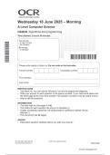 OCR A LEVEL Computer Science H446/01 JUNE 2025 QUESTION PAPER AND MARK SCHEME