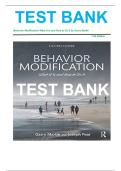 This document contains a comprehensive test bank for Behavior Modification: What It Is and How to Do It by Garry Martin (11th Edition), covering core principles of behavior analysis and applied behavior modification. It includes multiple-choice and exam-style questions with answers focused on learning theory, reinforcement, punishment, behavior change procedures, and real-world applications, making it ideal for exam preparation.