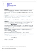 NR501 Week 8: Nursing Theory Quiz Week 8: Nursing Theory Quiz Question 1 A statement of beliefs and values about human beings and their world is: An assumption A concept A hypothesis A philosophy Question 2 A set of logically interrelated concepts, statements, propositions, and definitions supported by data, testing, and verification to account for or characterize some phenomena is called: An assumption A construct A model A theory Question 3 __________ is a theory that has been developed by ano...