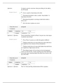 Slown On this page, you find all documents, package deals, and flashcards offered by seller Slown. 52 Documents 0 Flashcards 0 Package deal Community 5 Followers 0 Following 52 items Everything Documents Flashcards Package deal Best sold Newest Rating NURS 6650 Midterm Exam with questions and answers that will score you 100% (0) $12.39 0x sold The PMHNP is meeting with the parents of a school-aged girl. The mother reports feeling frustrated because they cannot get their daughter to do her homework. “All she wants to do is play on her phon e,” the father reports. The mother tells the PMHNP that they have tried threatening her by telling her that she won’t be able to have her friends over and that she won’t be allowed to watch TV. Which of the following responses made by the PMHNP demonstrates use of the Premack principle? 2. Th... i x Exam (elaborations) • 18 pages • by Slown • uploaded 2021 Quick View i x Chamberlain College Of Nursing • NURS6650 STUDY GUIDE (0) $7.99 0x sold We recognize that people learn in a variety of ways, so we’ve made each concept available for you to learn in a way that makes sense to you. We’re glad you’ve chosen ​ Sophia ​ to take the next step in planning your educational journey and significantly reducing the cost of your college tuition. Your ​ Sophia Pathways​ TM​​ online college course is designed to be completed in 60 days or less. You may start at any time and learn on your own schedule. There are no classes to atte... i x Exam (elaborations) • 5 pages • by Slown • uploaded 2021 Quick View i x Chamberlain College Of Nursing • ENGLISH 101 SOPHIA PATHWAYS Touch Stone 1 MILESTONE QUESTION 1 TO QIESTION 25.SCORE 100% (0) $12.99 1x sold MILESTONE QUESTION 1 TO QUESTION 25. 1 Select the statement that would most likely have been made by Aristotle. “New things do not come into existence; rather, things change their organizatio n.” “What is true is always true, independent of wisdom, language, or knowledge.” “We must begin with the world we encounter every day, rather than with the abstraction of metaphysics.” “The world is unchanging and eternal, which conflicts with the illusion that life is neither... i x Exam (elaborations) • 9 pages • by Slown • uploaded 2021 Quick View i x Liberty University • PHILOSOPHY 201 GREEK DOCUMENT WITH Q&A. SCORE 100. (0) $15.49 0x sold ENGL 1102 Lisa is considering whether it is morally permissible to eat meat. Which branch of philosophy can help her answer this question? Ethics Metaphysics Cosmology Epistemology RATIONALE Ethics is the branch of philosophy in which concepts of value (e.g., right and wrong are considered). In epistemology, concepts of knowledge are analyzed and defended. Metaphysics is concerned with discovering and describing the ultimate nature of reality, and cosmology is the study of the u... i x Exam (elaborations) • 16 pages • by Slown • uploaded 2021 Quick View i x Chamberlain College Of Nursing • ATI TEAS Study Guide ENGLISH ANCIENT GR 301Practice Milestone Answers (0) $16.09 0x sold ANCIENT GR 301Practice Milestone Answers 1 Choose the FALSE statement about the philosophical value of the Socratic Method. Truth is discovered through reasoning. Students understand why the answer is what it is. Existing knowledge is the basis for new knowledge. The teacher imparts knowledge based on experience. RATIONALE The Socratic Method is not a teaching system in which a teacher communicates knowledge based on his or her experience to students. Rather, it is an approach th... i x Exam (elaborations) • 15 pages • by Slown • uploaded 2021 Quick View i x Chamberlain College Of Nursing • Sophia - Ancient Greek Philosophers - Unit 1 Milestone 1. QUIZ 1 with relevant questions and answers. (0) $16.49 0x sold The U.S. Food and Drug Administration (FDA) regulates: