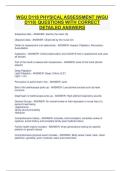 This document contains comprehensive questions and correct, detailed answers for the WGU D118 Physical Assessment course. It covers head-to-toe assessment techniques, health history, inspection, palpation, percussion, auscultation, and system-specific physical examination findings.