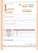 1 cicloescolar 2018 - 2019 Grad o EXAMEN MENSUAL: SEPTIEMBRE BLOQUE 1 Nombre del Alumno: Grado: Grupo: Fecha: Nombre de la Escuela: MATERIA REACTIVOS ACIERTOS CALIFICACIÓN Matemáticas 13 Español 12 Conocimiento del Medio 18 Firma del padre o tutor: ____________________ 1 grado - CicloE ® 2018 4 y 5.- Dibuja los plátanos que faltan para que cada mono tenga uno. 6 y 7.- Tacha los grupos que tienen la misma cantidad que el señalado. MATEMÁTICAS página 2 de 2 8 y 9.-...