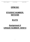 OPM1501 – Assignment 4 M. UYS () Unique no:
