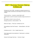 UNIT 7 Business Decision Making: FORMULAS