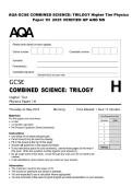 AQA GCSE COMBINED SCIENCE: TRILOGY Higher Tier Physics Paper 1H 2025 VERIFIED QP AND MS