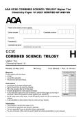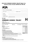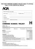AQA GCSE COMBINED SCIENCE: TRILOGY Higher Tier Biology Paper 2H 2025 VERIFIED QP AND MS