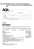 AQA GCSE BUSINESS Paper 2 Influences of marketing and finance on business activity 2025 VERIFIED QP AND MS