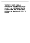 BORMANN, DEBRA ZAHAY, MARY LOU ... i x Exam (elaborations) • 5 pages • by Smarttutor • uploaded 2022 Quick View i x American University • Nursing TEST BANK FOR SPECIAL EDUCATION IN CONTEMPORARY SOCIETY AN INTRODUCTION TO EXCEPTIONALITY, 7TH EDITION, RICHARD M. GARGIULO, EMILY C. BOUCK (0) $25.49 0x sold TEST BANK FOR SPECIAL