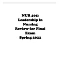 NUR 405 Leadership in Nursing Review for Final Exam Spring 2022
