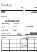 This concept map outlines the patient’s key information and chief complaint within the NUR 101 Fundamentals of Nursing framework. It provides a structured approach to data collection, assessment, and care planning, linking subjective and objective findings to potential nursing diagnoses. The document highlights patient demographics, medical history, current symptoms, vital signs, and initial assessment findings. It serves as the foundation for developing nursing interventions, outcomes, and ev...