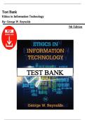 Strengthen your understanding of technology ethics with the Comprehensive Test Bank for Ethics in Information Technology, 5th Edition by George W. Reynolds, covering all 10 chapters Core areas covered include: