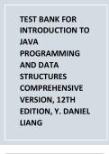 This document contains a complete test bank for Introduction to Java Programming and Data Structures, Comprehensive Version (12th Edition) by Y. Daniel Liang, covering all major topics from the textbook. It includes exam-style questions with answers on Java fundamentals, object-oriented programming, data structures, algorithms, recursion, and problem-solving, making it suitable for course assessments and exam preparation.