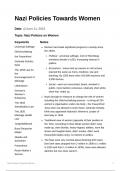 An in-depth summary (in the style of Cornell notes) of Nazi policies towards women during the 1930s as well as a look at how women's positions changed from their position during the Weimar republic. Containing stats, and knowledge not on the specification