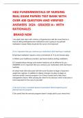 HESI FUNDERMENTALS OF NURSING REAL EXAM PAPERS TEST BANK WITH OVER 400 QUESTION AND VERIFIED ANSWERS 2024 GRADED A+ WITH RATIONALES