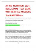 - ATI RN NUTRITION 2024 REAL EXAMS TEST BANK WITH VERIFIED ANSWERS • Exam (elaborations)