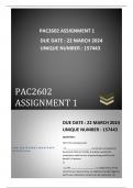 PAC2602 assignment 01 Due 22 March 2024 (157443). trustworthy and reliable answers with a guaranteed 100% pass. for assistance whatsapp 0725351764 .