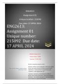 ENG2613 Assignment 01 Due 17 April 2024. trusted and reliable answers. 100% pass guaranteed.