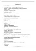 Het is een samenvatting van beide delen van het vak. De structuur van het boek wordt gevolgd, met aantekeningen van de les als verduidelijking. Af en toe komen er voorbeeldvragen voor.