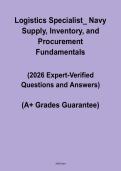 Study Cave Nothing but quality results! 84 Documentos 0 Tarjetas de estudio 0 Paquetes Community 0 Seguidores 0 Siguiendo 84 artículos Todo Documentos Tarjetas de estudio Paquetes Lo más vendido El más nuevo Puntuación MLPAO Exam Review – Study Guide, Notes and Exam Prep PDF (0) $9.99 0x vendido This document contains an MLPAO exam review with notes covering key laboratory concepts, procedures, and essential topics organized to support effective study and exam preparation. i x Examen • 37 páginas • por StudyCave111 • subido 2026 Vista rápida i x MLT - Medical Laboratory Technician • MLT - Medical Laboratory Technician Medical Terminology HOSA – Study Guide, Notes and Review PDF (0) $9.99 0x vendido This document contains Medical Terminology HOSA study material with notes covering key medical terms, prefixes, suffixes, and definitions organized to support effective learning, revision, and exam preparation. i x Examen • 12 páginas • por StudyCave111 • subido 2026 Vista rápida i x Health science • Health science Med Tech State Certification Exam – Questions, Answers and Study Guide PDF (0) $9.99 0x vendido This document contains a Med Tech State Certification Exam with questions and answers covering key medical technology concepts and procedures, organized to support exam practice and effective preparation i x Examen • 10 páginas • por StudyCave111 • subido 2026 Vista rápida i x MLS - Medical Laboratory Scientist • MLS - Medical Laboratory Scientist Logistics Specialist Navy Supply, Inventory and Procurement Fundamentals – Study Guide PDF (0) $9.99 0x vendido This document contains Logistics Specialist training material on Navy supply, inventory, and procurement fundamentals, covering key concepts, processes, and procedures organized to support learning and practical understanding. i x Examen • 23 páginas • por StudyCave111 • subido 2026 Vista rápida i x military education • military education Logistics Specialist Training Manual – Study Guide, Notes and Procedures PDF (0) $9.99 0x vendido This document contains a Logistics Specialist Training Manual covering key logistics concepts, operations, procedures, and essential guidelines organized to support learning, training, and practical understanding. i x Examen • 5 páginas • por StudyCave111 • subido 2026 Vista rápida i x military education • military education Logistic Specialist E-5 Mock Exam – Questions, Answers and Study Guide PDF (0) $9.99 0x vendido This document contains a Logistic Specialist E-5 mock exam with questions and answers covering key logistics concepts, operations, and responsibilities, organized to support exam practice and effective preparation. i x Examen • 29 páginas • por StudyCave111 • subido 2026 Vista rápida i x military education • military education EFMB Written Test Study Guide – Notes, Concepts and Exam Prep PDF (0) $9.99 0x vendido This document contains an EFMB Written Test study guide with notes covering key medical concepts, procedures, and essential topics organized to support effective study, revision, and exam preparation. i x Examen • 33 páginas • por StudyCave111 • subido 2026 Vista rápida i x Army EFMB • Army EFMB EFMB Written Test FY23 – Questions, Answers and Study Guide PDF (0) $9.99 0x vendido This document contains the EFMB Written Test FY23 with questions and answers covering key military medical concepts and topics, organized to support exam practice and effective preparation. i x Examen • 30 páginas • por StudyCave111 • subido 2026 Vista rápida i x Army EFMB • Army EFMB D115 Advanced Pathophysiology Master Set – Study Guide and Nursing Notes PDF (0) $9.99 0x vendido This document contains a D115 Advanced Pathophysiology master set for advanced practice nursing, covering key disease processes, mechanisms, and clinical concepts organized in structured notes to support effective study and exam preparation. i x Examen • 31 páginas • por StudyCave111 • subido 2026 Vista rápida i x advanced pathophysiology • advanced pathophysiology COMSAE All Exam 2026 – Questions, Answers and Study Guide PDF (0) $9.99 0x vendido This document contains COMSAE All Exam 2026 questions and answers covering key medical concepts and exam topics, organized to support effective practice, revision, and exam preparation. i x Examen • 53 páginas • por StudyCave111 • subido 2026 Vista rápida i x medicine • medicine 1 2 3 4 5 ...