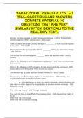 containe... i x Exam (elaborations) • 13 pages • by StudyConnect • uploaded 2023 Quick View i x NCTA NS0-002 • NCTA NS0-002 HAWAII PERMIT PRACTICE TEST – 1 TRIAL QUESTIONS AND ANSWERS COMPETE MATERIAL (40 QUESTIONS THAT ARE VERY SIMILAR (OFTEN IDENTICAL) TO THE REAL DMV TEST.) (0) $10.99 0x sold HAWAII PERMIT PRACTICE TEST – 1