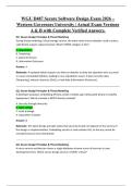 This document contains the actual WGU D487 Secure Software Design exam for 2026, including both Version A and Version B, with complete and accurate exam questions. All questions are fully answered with detailed, verified solutions, reflecting secure design principles, threat modeling, risk mitigation, and secure SDLC concepts, and the exam is already graded with an A+ result.