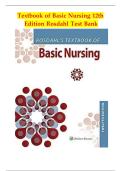 This document provides the full test bank for the Textbook of Basic Nursing, 12th edition. It includes chapter-by-chapter multiple-choice questions and correct answers covering foundational nursing concepts, historical perspectives, professional roles, nursing theories, licensure, patient care skills, and the nursing process. The material is aligned with basic nursing courses and supports exam readiness.
