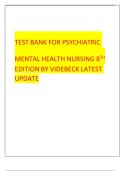 This test bank includes chapter-based questions covering major psychiatric conditions, therapeutic communication, crisis intervention, psychopharmacology, and mental health assessment. It also provides scenario-based NCLEX-style questions to reinforce application of psychiatric nursing concepts. The content supports mental health nursing courses and exam preparation.