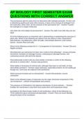 AP BIOLOGY FIRST SEMESTER EXAM QUESTIONS WITH CORRECT ANSWER