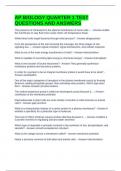 AP BIOLOGY QUARTER 1 TEST QUESTIONS AND ANSWERS