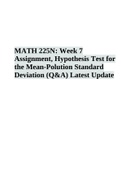 MATH 225N: Week 7 Assignment, Hypothesis Test for the Mean-Polution Standard Deviation (Q&A) Latest Updated 2023