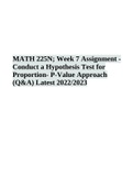 MATH 225N; Week 7 Assignment - Conduct a Hypothesis Test for Proportion- P-Value Approach (Q&A) Latest 2022/2023