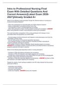 Intro to Professional Nursing Final Exam With Detailed Questions And Correct Answers||Latest Exam 2026 2027||Already Graded A+