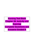 Nursing Test Bank Chapter 39: Activity and Exercise Complete Questions and Answers Graded A