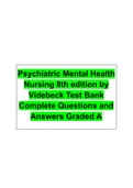 Psychiatric Mental Health Nursing 8th edition by Videbeck Test Bank Complete Questions and Answers Graded A