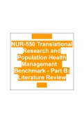 NUR-550 Translational Research and Population Health Management Benchmark - Part B: Literature Review