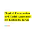 Test Bank Physical Examination and Health Assessment 8th Edition by Jarvis Complete Chapters - Graded A. Chapter 1: Evidence Based Assessment. Chapter 2: Cultural Assessment. Chapter 3: The interview. Chapter 4: The complete health history...