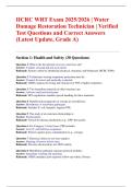This document is an actual exam prep resource for the IICRC Water Damage Restoration Technician (WRT) Certification Exam. It provides verified test questions with 100% correct answers, updated for the 2025 / 2026 certification cycle. The material covers actual exam topics including water damage principles, psychrometry, drying equipment, inspection and monitoring, safety protocols, and industry standards. With this guide, candidates can practice with actual certification-style questions and prep...