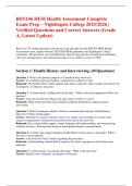 This document is an actual complete exam prep guide for the BSN246 HESI Health Assessment at Nightingale College. It includes verified questions with 100% correct answers, fully updated for the 2025 / 2026 academic years. The material covers actual exam topics such as physical assessment techniques, patient history, diagnostic methods, clinical reasoning, and health promotion strategies. With this comprehensive guide, students can review actual exam-style questions and prepare effectively to ach...