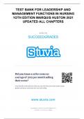 TEST BANK FOR LEADERSHIP AND MANAGEMENT FUNCTIONS IN NURSING 1OTH EDITION MARQUIS HUSTON 2021 UPDATED ALL CHAPTERS