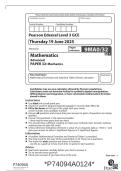 - A-LEVEL EDEXCEL PAPER 1 PURE MATHEMATICS June 2025 MARK SCHEME (9MA0/01) • Tentamen (uitwerkingen)